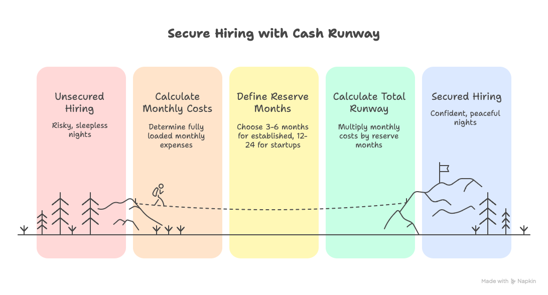 (Fully Loaded Monthly Cost of New Hire) × (Required Months) = Total Cash Reserve Needed