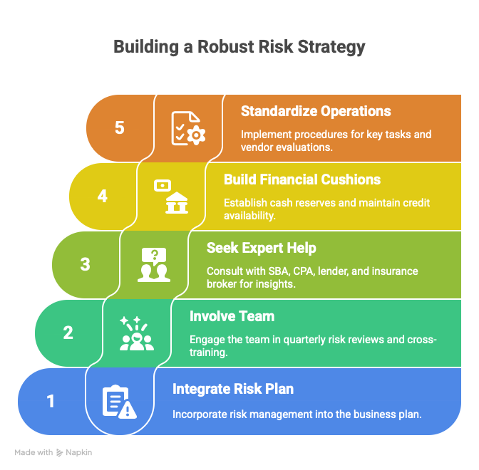 Involve your team. Hold quarterly check-ins to review risks. Update SOPs. Cross-train staff so you're not vulnerable if someone leaves or gets sick.
