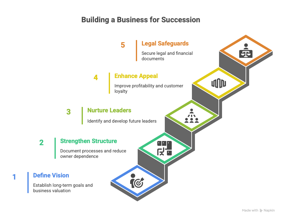 Start by defining your long-term goals. Are you building a family legacy, planning to sell to a key employee, or targeting an outside buyer? Discuss this vision with trusted stakeholders to ensure alignment.